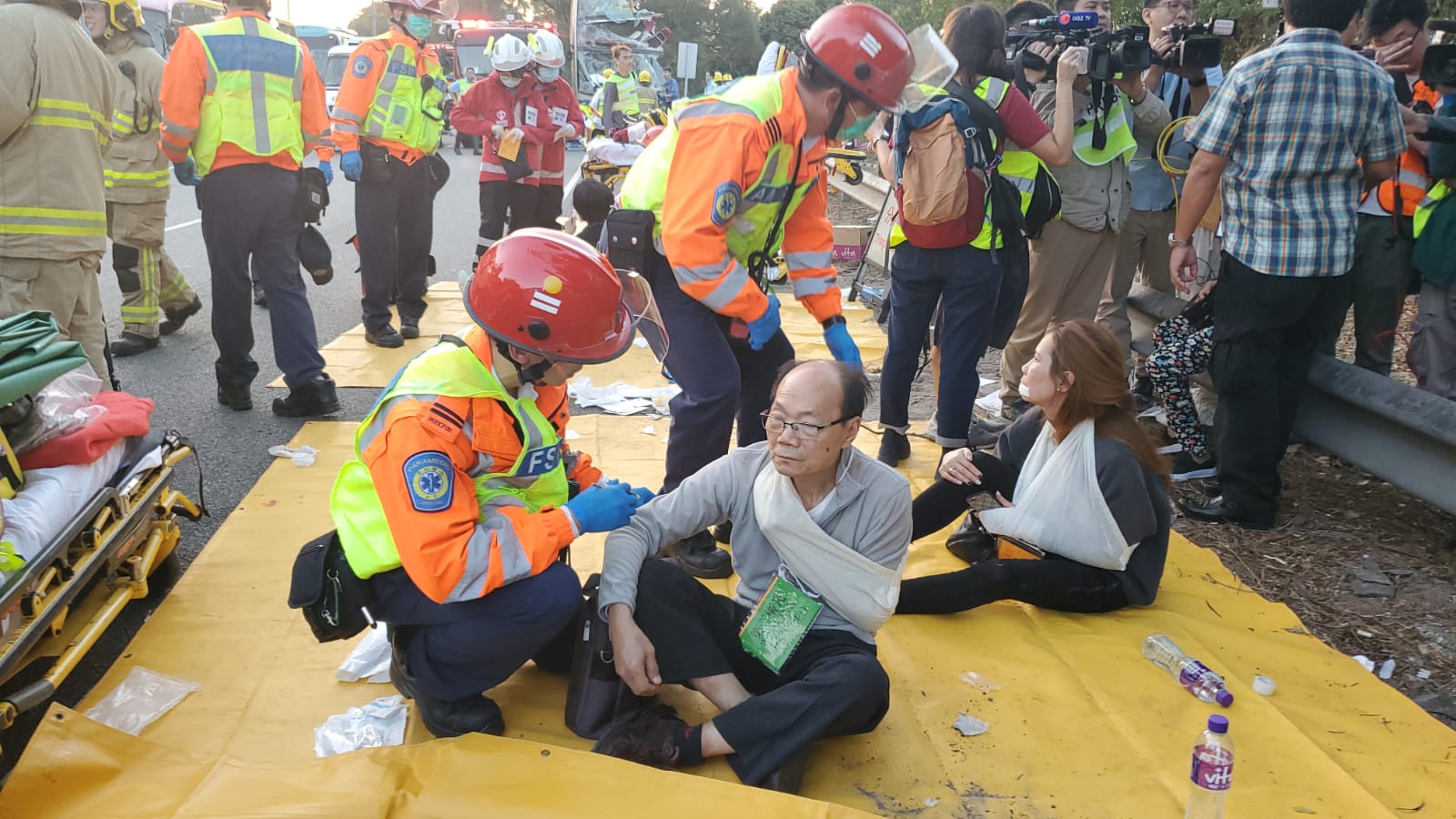 報道稱,現場所見,巴士左邊車身嚴重撞毀,消防及警方正在現場救出傷者,目前仍有兩名傷者被困。部分傷者坐在地上等待救援。另外,現場設置臨時停屍間。