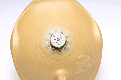 經過千年的演繹,媽祖文化已成為中華民族優秀傳統文化的重要組成部分,壺把以傳統的“媽祖飛天”作為造型題材,媽閣望海,濤聲依舊,慶賀團圓,這不僅提高了作品的靈動感,更增強使用的舒適感。媽祖的名字凝聚着千千萬萬海內外中華子孫愛國愛鄉、虔誠向善的心願,媽祖文化已經成為聯絡海內外、溝通全世界的橋樑和紐帶。泥為段泥,黃色,是炎黃子孫的顏色。整件作品寓意是:祖國日益開放、包容、強大,澳門儘可“九萬里風鵬正舉”;多元文化的尊重和包容,讓祖國大陸與澳門地區共謀發展,共同興盛。