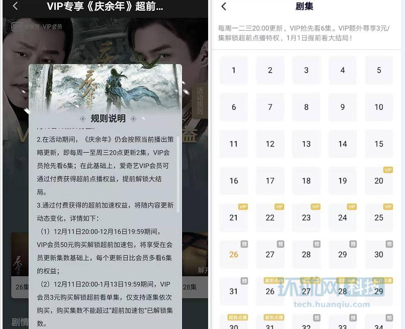 【環球網科技報道 記者 *林迪】*近日,《慶餘年》超前點播事件引起業界和網友的熱切關注,對此,騰訊視頻、愛奇藝兩家視頻平台於日前做出回應,愛奇藝還修改超前點播規則。據悉,此前,騰訊視頻曾宣佈VIP基礎上實行二次付費點播,即騰訊視頻會員可提前看6集權益不變,不願意一次性買斷的會員可選擇3元每集的超前點播權;愛奇藝則修改為VIP可在提前觀看6集的基礎上,並以每集3元的價格再多看6集。
