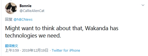 有美國網友調侃,“也許是考慮到,瓦坎達有我們需要的科技。”↓