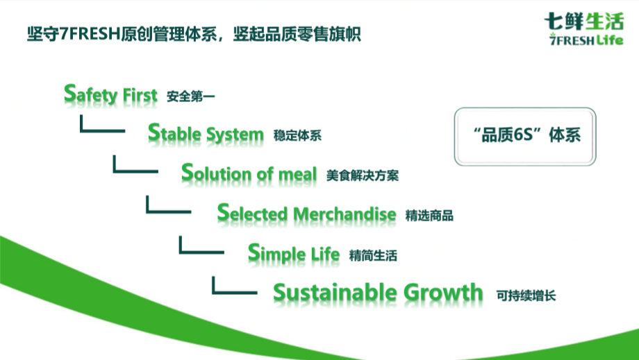 以七鮮生活為例,店內數千種商品以京東垂直供應鏈為主,7FRESH研發供應鏈和7FRESH本地供應鏈為輔,從而實現優選精準化、餐飲標準化、需求滿足本地化,來打造商品核心競爭優勢。此外,7FRESH堅持做品質零售,七鮮生活同樣融合了6S品質零售體系以此作為基點提供貼心服務贏得消費者的信賴。
