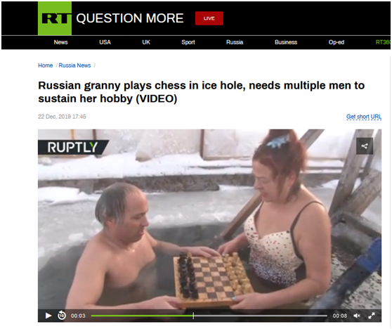 據RT介紹,普什卡列娃來自俄羅斯車里雅賓斯克,那裏的居民被稱作“俄羅斯最硬核的人”,而普什卡列娃在冰窟窿裏下棋的愛好再次印證了這樣的説法。