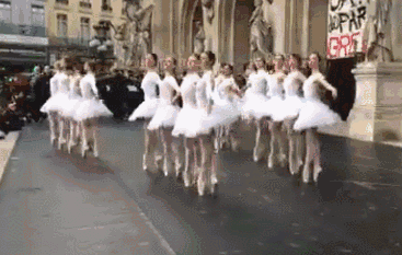 報道稱,當地時間12月24日,一羣芭蕾舞女演員聚集在巴黎歌劇院(Palais Garnier)門口,表演《天鵝湖》選段。RT評論稱,在過去的一年裏,巴黎幾乎每週都會發生“黃背心”抗議活動,然而在(舞蹈)編排與社會階層方面,沒有一個能與舞者的示威活動相提並論。