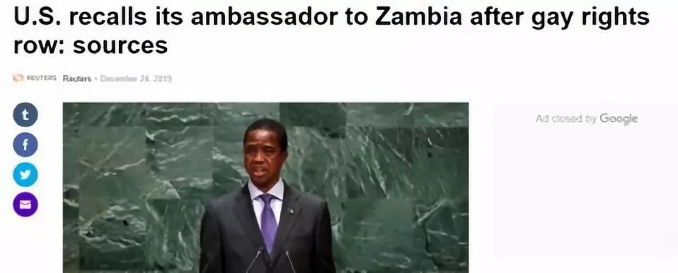 據外媒報道,近日,美國政府突然宣佈召回美國駐非洲國家贊比亞的大使,因為這名美國大使的一些言行,已經引起了贊比亞方面的強烈不滿,甚至於贊比亞總統都直接發話,稱不會再和這名大使合作了。