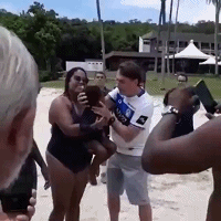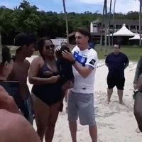 視頻中,站在沙灘上的博索納羅正準備與民眾合影,他發現,身旁一位母親懷中的孩子並沒有看向鏡頭。於是,博索納羅用手將孩子的頭漸漸扭轉過來,把眾人逗笑。