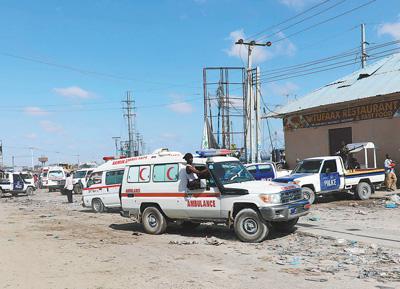 12月28日,在索馬里首都摩加迪沙,救護車在炸彈襲擊現場參與救援。 新華社發