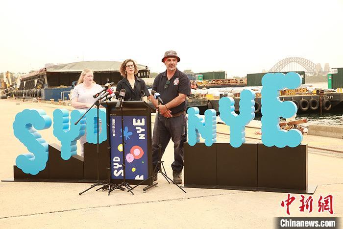 12月29日,悉尼市政府在格里布島舉行新聞發佈會,介紹悉尼跨年慶典煙花表演準備情況。逾10萬支煙花已裝船就緒,標誌着悉尼跨年慶典煙花表演進入倒計時。圖為跨年慶典煙花表演相關人員介紹情況。中新社記者 陶社蘭 攝