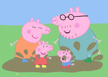 甚至,豬媽媽還會和豬爸爸、弟弟喬治一起到泥坑裏陪佩奇玩耍。