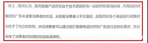 江蘇省消保委認為,即使經營者銷售時作出了告知,履行了告知義務,但該告知內容是消費者購買智能電視就必須接受無法自主關閉的開機廣告,對消費者仍然欠公平合理,侵害了消費者相關權益,經營者理應糾正。鑑於樂融公司始終未能正確認識行為的錯誤,經相關論證,江蘇省消保委依法提起公益訴訟,確保《消法》賦予的消費者各項權利得到完全保障,還消費者開機“清朗權”。
