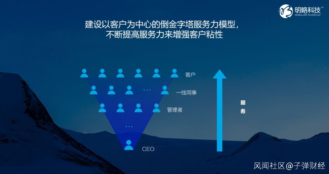 在文章的最後一部分,我將分享一個非常重要的概念,就是**以客户為中心的倒金字塔服務力模型,**它的核心原理,是不斷提高服務力來增強客户粘性,不斷積累know-how,連接資源和服務。