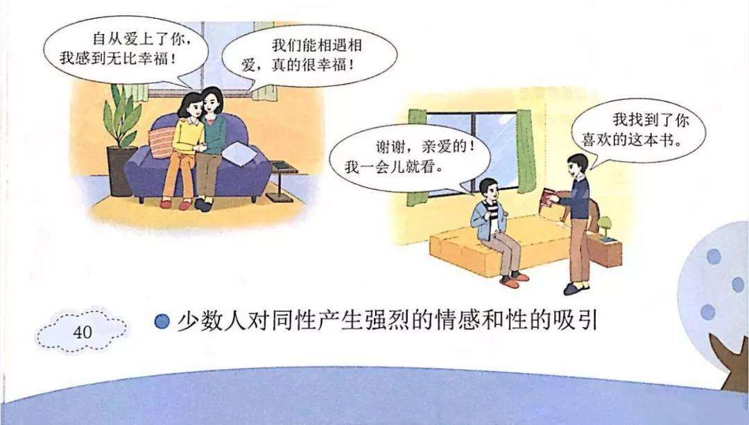 這本教材其實非常大膽,也十分全面,觸及了許多社會上非常敏感的話題,比如“性過程”、“不婚主義”“同性戀婚姻”等,因此,關於它的爭議也非常多。有網友認為這是進步,也有網友認為這“有些超過了”。