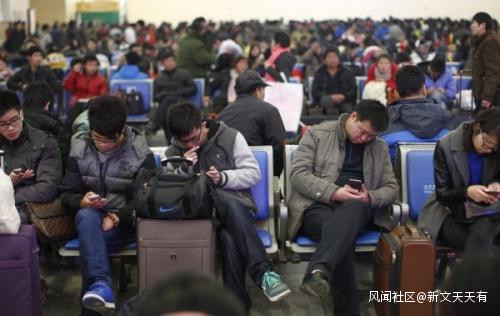 晨報淄博2020年1月11日訊,1月10日上午10點,淄博火車站二樓東候車廳的旅客幾乎人人低頭玩手機,有的旅客乾脆趴在行李箱上玩手機。聽到車站大廳廣播中播報客運信息,有的旅客抬頭看看遠處的列車時刻表;有的旅客玩手機很專注,差點忘了自己乘坐的列車即將到站,直到值班客運員呼喊着提醒該檢票了,這才拖着行李跑到檢票口準備乘車。