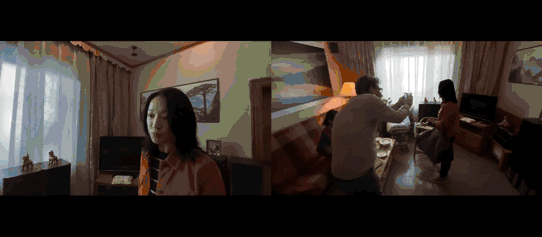 再比如周迅在母親家中與母親衝突,走出家門的一鏡到底畫面,在一個不大面積的屋子裏,整個拍攝是通過 iPhone 11 Pro 的超廣角來實現的導演僅僅用手持就完成了全部的拍攝。