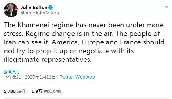 博爾頓都辭職了,這次都忍不住跳出來直陳“政權更迭在即”,“伊朗人民看得見”。