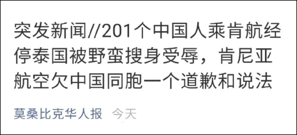 泰國頭條新聞社訊 有媒體報道稱,有201名中國人乘肯尼亞航空公司航班經停泰國回國時,在曼谷機場遭到搜身。就此問題,泰國頭條新聞向中國駐泰國使館瞭解了有關情況。