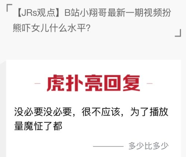 B站大UP主小翔哥扮熊嚇女兒被網友批消費孩子賺流量,你怎麼看?_風聞