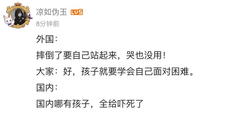 而且,一般在小孩子愉悦地享受自我世界的時候,家長出其不意來一招,這樣比較搞笑。而小翔哥這種在孩子一開始就明確表示不適的情況下還非要繼續“走流程”,大概也是引起一些觀眾不滿的原因。