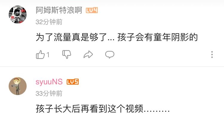 還有人擔心,小翔哥這種大UP主做這種視頻,會不會帶起惡搞孩子來博眼球的風向。