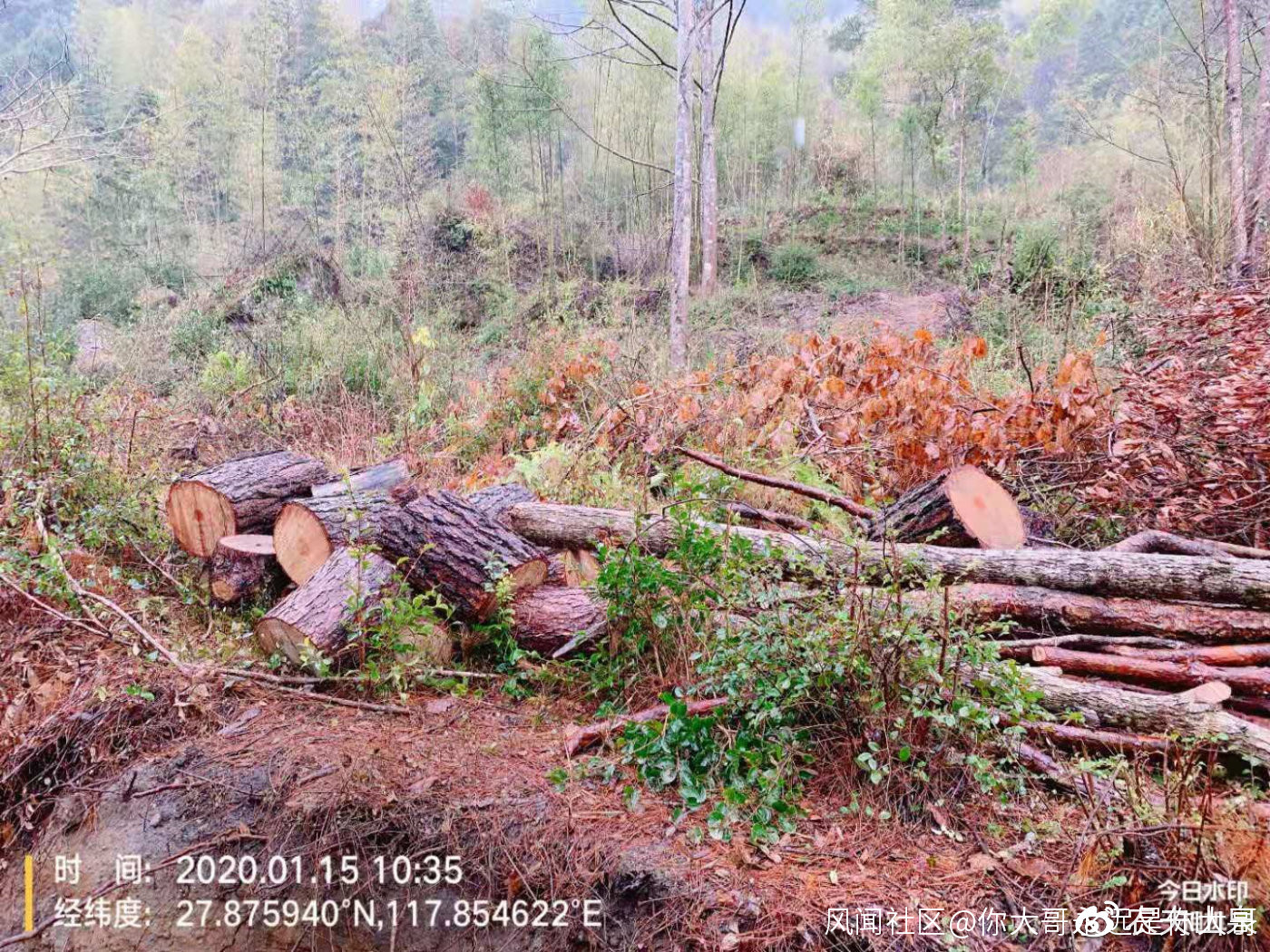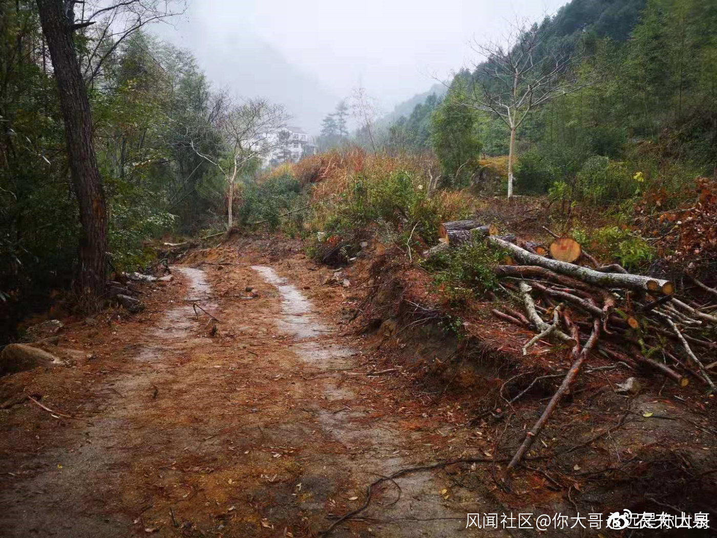 目前由舉報人強某某提供的部分圖片視頻素材在媒體上廣泛流傳。以下圖中的樹木為例,強某某以此來指證農夫山泉的施工便道毀壞了國家森林公園林木。