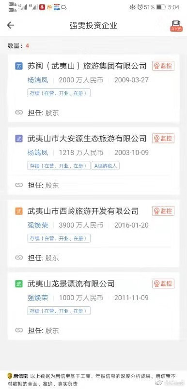 舉報人強某某,系武夷山大安源生態旅遊有限公司法人與董事長。其名下還註冊了多家公司,包括武夷山市西嶺旅遊開發有限公司、武夷山龍景漂流有限公司、武夷山市蘇閩房地產有限公司等。