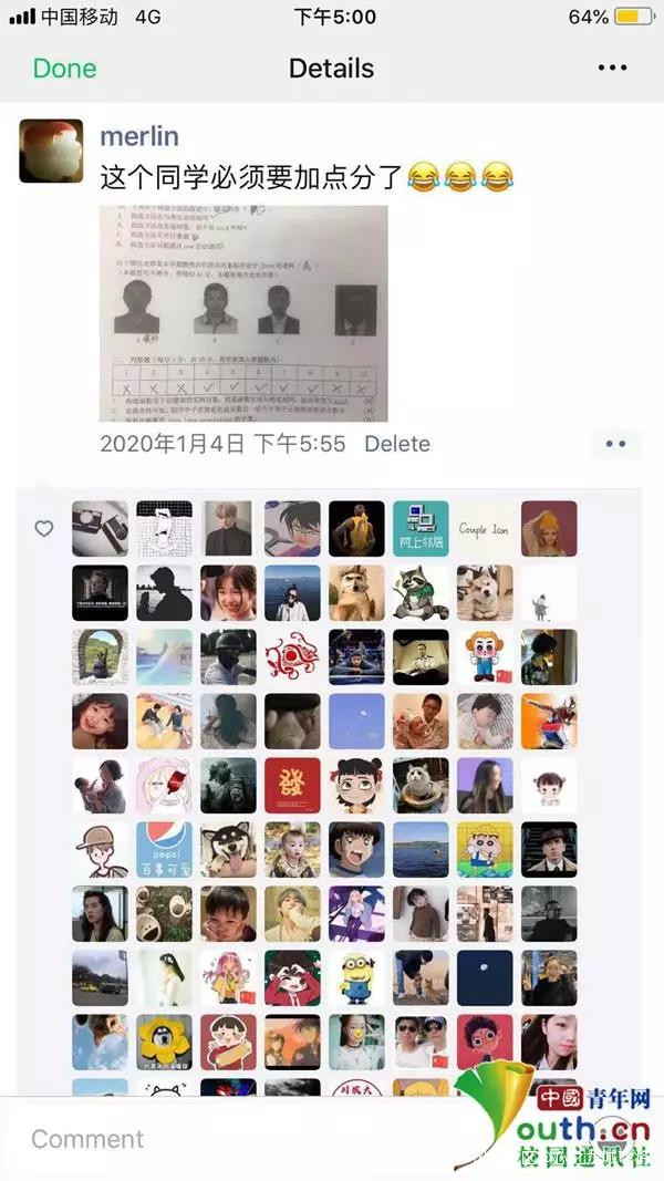 遇到這麼可愛的老師,同學們都開始羨慕“別人家的老師”。這一道“看圖識臉”題,打破了同學們對於考試的常規印象,其他學院的學生都表示羨慕,“沒想到在網上看到過的段子,在我們學校居然成真了!”