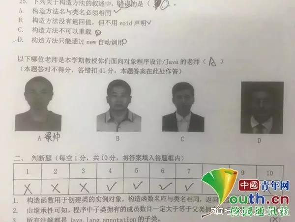 高校期末考試看圖識任課老師:答對不得分,答錯扣41分_風聞
