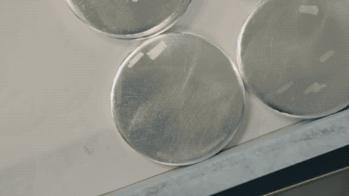 這屆金牌製作的時候採用的是化學鍍的方法,像這樣把銀牌泡到含有金的溶液裏,金就會附着在銀牌的表面。