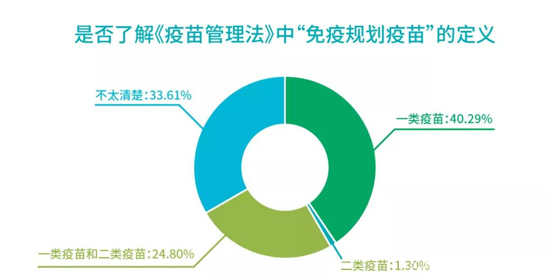 近一半的家長不知道《疫苗管理法》已經出台,對於《疫苗管理法》中的“免疫規劃疫苗(即免費疫苗)”能準確瞭解的家長佔比約為40%。