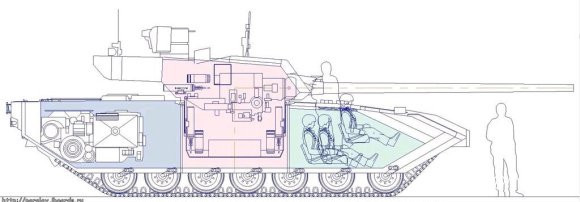 T-14“阿瑪塔”坦克號稱炮塔無人,但是由於沿用了類似T-64的“炮彈垂直轉角自動裝彈機”,因此,它的乘員艙和無人炮塔之間還是保留了通道,可以讓乘員鑽進無人炮塔排除裝彈機故障,否則坦克故障率太高,無法正常作戰。