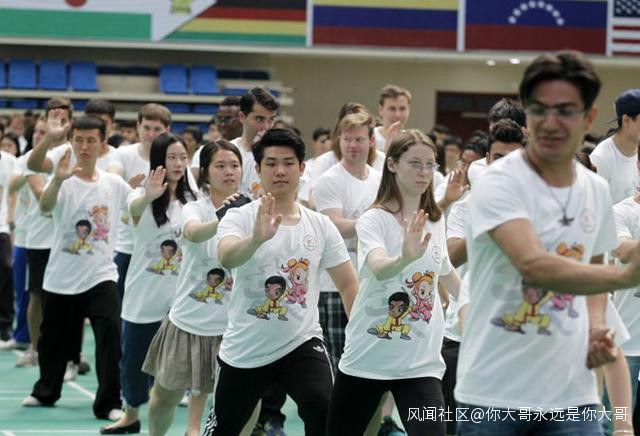 圖注:2016年,參加來華留學生武術比賽的選手共同展示太極拳