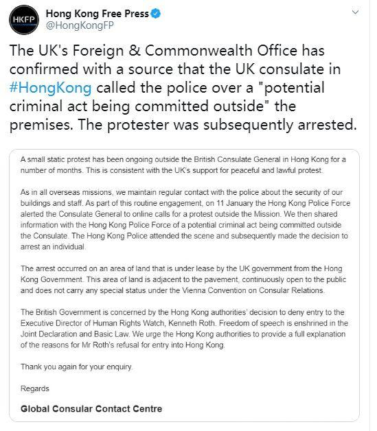儘管香港警方當時就澄清是英國領館讓他們去抓人的,《泰晤士報》等英國媒體仍然引用所謂的“人權人士”和英國政客的言論,大肆譴責着香港警方。