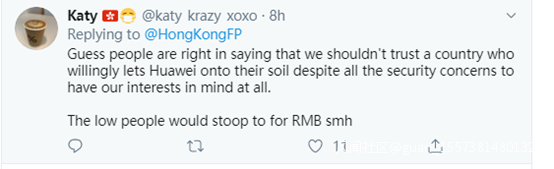 另外,一些反內地反到“腦子都不要”的暴徒及其支持者,居然荒誕地把華為公司也扯了進來,説什麼“一個允許華為在自己國家開展業務的國家果然不可信”,還有暴徒稱“乾脆讓華為全面進入英國吧”。