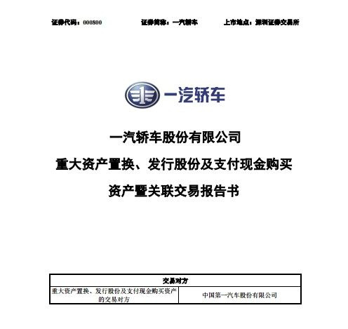 2020年1月3日,一汽轎車發佈《重大資產置換、發行股份及支付現金購買資產暨關聯交易報告書》。該報告顯示,一汽轎車資產置換方案發生變化,取消了原來募集資金這一選擇。