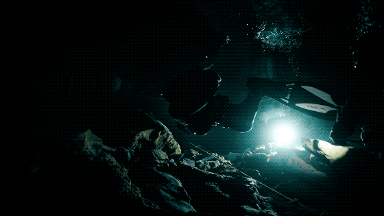 水下洞穴,大都是未被開發和涉足的領域,而拍攝,全靠一根繩索牽引保命,一旦失去方向,脱離了繩索,可能再也找不到逃生口。