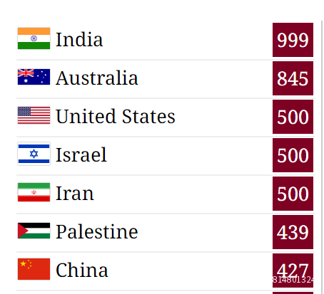 從今天的數據看,澳大利亞的污染指數不僅比中國高了近一倍,而且還直追第一名印度了。