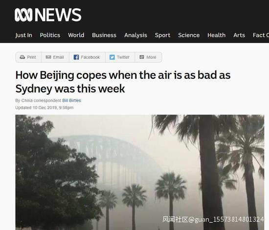 1個月前,就在山火燒得正旺時,澳大利亞廣播公司(ABC News)發了這麼個新聞:《中國空氣像這周的悉尼一樣糟,北京當局該怎麼應對?》