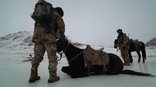 “追風”,是新疆剋剋吐魯克邊防連一匹軍馬的名字,它在連隊整整服役了15個年頭,1000多次陪伴邊防戰士巡邏執勤。在官兵們眼中,“追風”是一名老兵,是他們無言的戰友。今年,“追風”已到了最高的服役年限,艱難的巡邏路,它再也走不動了。退役前,戰友們最後一次陪伴它,踏上海拔5250米的巡邏路。深冬的帕米爾高原氣温降到了零下29攝氏度,剋剋吐魯克邊防連被積雪包裹得嚴嚴實實。
