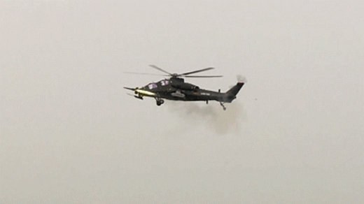 一場空地協同訓練在豫北某訓練場展開。隱蔽滲透至藍軍陣地前沿的地面偵察分隊,為直升機引導打擊目標,集火開闢機降場。兩架武裝直升機迅速進入攻擊位置,