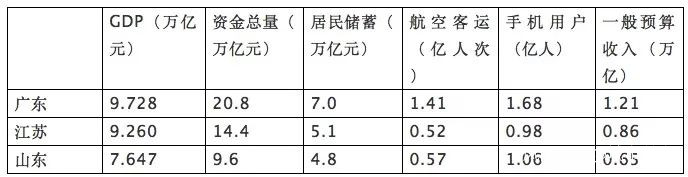 例如,只看GDP的話,廣東和江蘇基本相當,但如果看公共財政收入、航空吞吐量、世界500強、A股上市公司數量、胡潤富豪榜富豪數量、本外幣存款等多個數據,廣東領先江蘇的幅度要比GDP反映的差距大得多,數據如下: