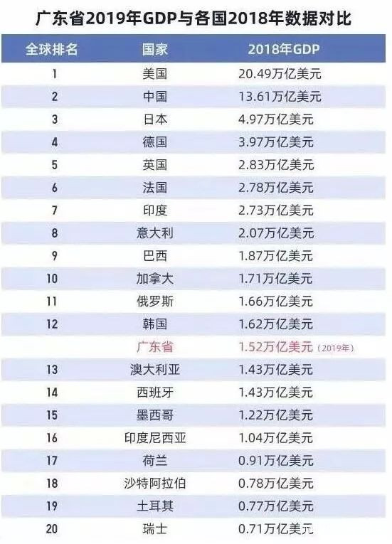 如果把廣東省單列,其經濟體量已經超過澳大利亞,直逼韓國,可位列全球第13大經濟體。