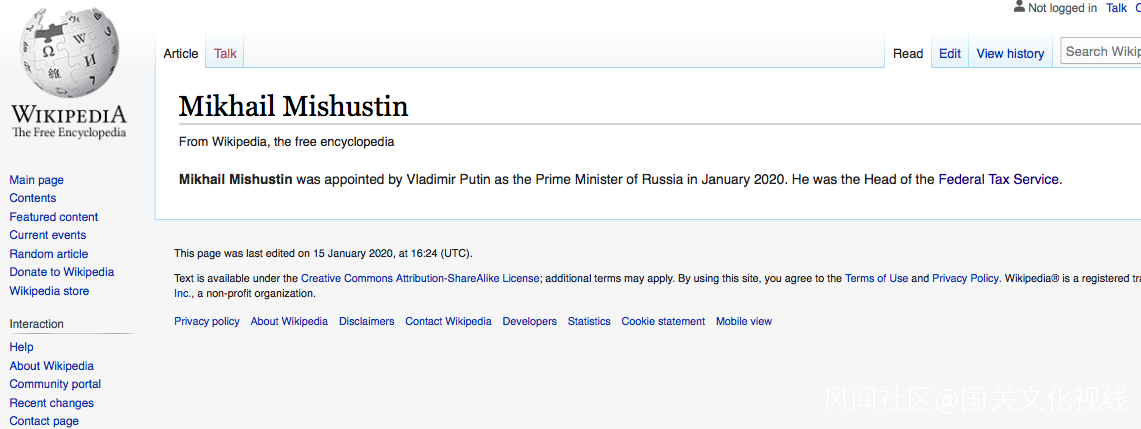 此前,除知道米舒斯金任俄羅斯聯邦税務局局長外,國際媒體似乎對他了解甚少。在俄羅斯媒體曝光普京提名他就任總理後,維基百科剛剛才出現他的專屬詞條,內容為:米舒斯金2020年1月被普京任命為俄羅斯總理。此前他任俄羅斯税務局局長。