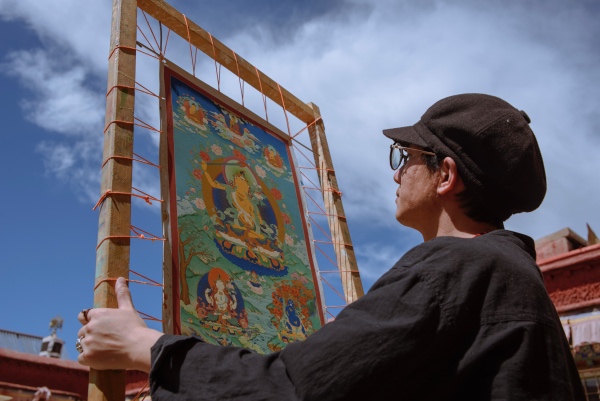 不是。唐卡修復這一塊完全沒有地方去學,除非去歐洲或日本學完壁畫修復後,再套到唐卡里面。故宮可能有修復唐卡的,但是它很封閉,也不是專攻的唐卡修復。而且唐卡修復這個東西也很麻煩,我覺得比油畫可能還要麻煩,油畫是畫在那種橫向縱向的布上,給底下打的底子再畫,現在很多唐卡出現的問題就是底子都掉了,布的紋理就出來了。(問:唐卡也像國畫一樣有幾層嗎?)跟國畫也不同,國畫是畫在宣紙上,它能浸到紙裏面,唐卡是在布上做底,撕不下來。有的時候畫厚了,捲起來可能顏色都會掉。它跟油畫也不一樣,沒有那種吸附力,油畫畢竟是油做媒介,唐卡是水和膠做媒介。所以唐卡的就是保存還是比較麻煩,你比如説內地比較潮濕的地方,拿過去的話,你要是一直放着,它可能都會發黴長毛,或者説被蟲子嗑什麼的。但是西藏比較乾燥,西藏的老唐卡遇到的最大的問題就是掛在寺院牆上給酥油燈燻黑了,再一種就是遇到漏雨。