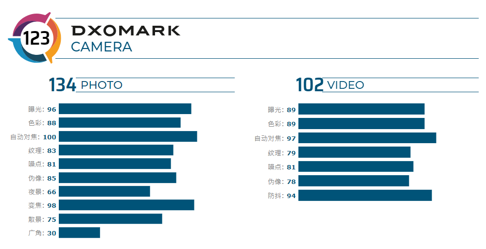 具體分數看,榮耀V30Pro在DXO的評分體系下獲得了拍照133分,視頻100分的成績。