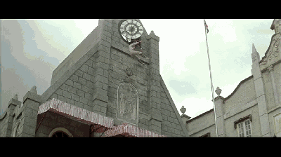 成龍設計了一個從15米高的鐘樓上跳下來的鏡頭。