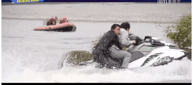 突然,成龍駕駛的摩托艇在轉彎時因操作不慎,翻入水中。艇上的二人也消失在了視頻畫面裏。
