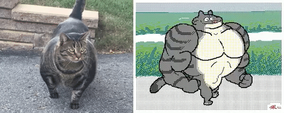 就被改造成了另一隻肌肉貓,看着它嘴角的微笑,好像在説:有人過來battle嗎?