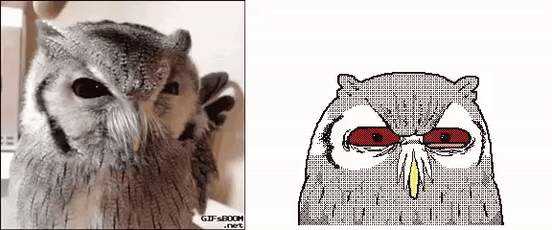 因為把自己的呆毛拉起來,而一臉憤怒的貓頭鷹: