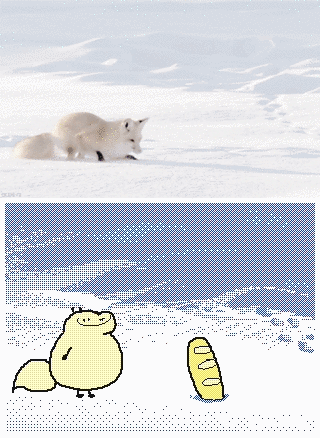 此外,還有這隻為了一根麪包,扎進雪地摔了個狗吃屎的小狐狸: