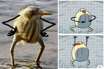 這隻鳥兩手掐着腰,其實是獨創舞蹈的準備動作: