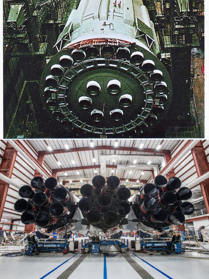 失敗的N1(上)和成功的獵鷹重型(下)(圖源:SpaceX/NASA)